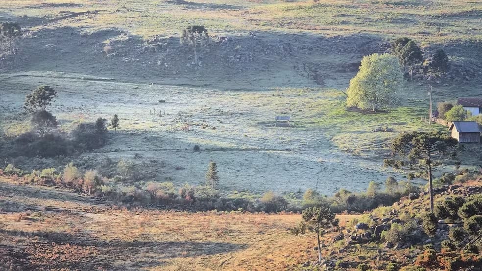 A Serra de Santa Catarina registrou geada na manhã de sábado (28) em plena primavera de sol. A mínima do estado foi de 0,68°C, em Urupema, de acordo com a Epagri/Ciram, órgão que monitora as condições meteorológicas no território catarinense.