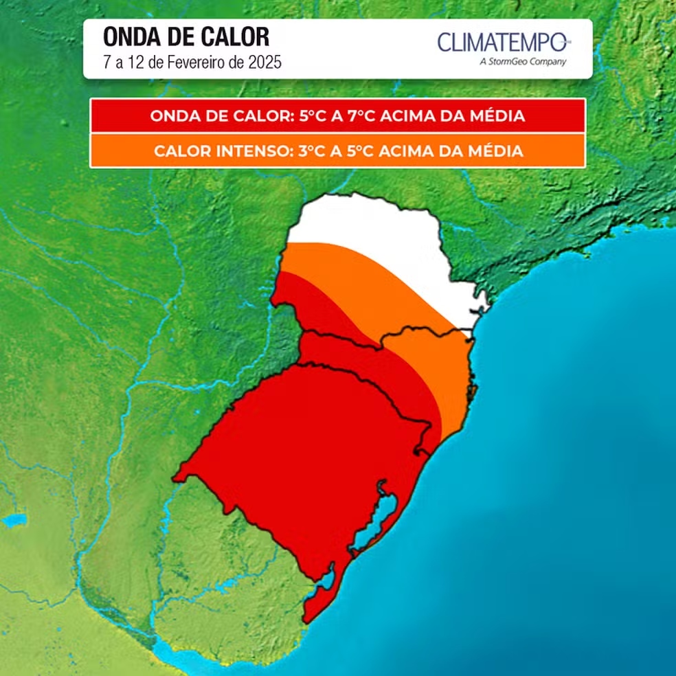 Na última semana, algumas cidades chegaram a registrar recordes históricos de temperaturas, como no caso de Quaraí, que registrou calor de 43,8ºC, maior temperatura do RS em mais de um século, segundo a Climatempo. Recorde esse que pode ser superado, segundo a previsão.