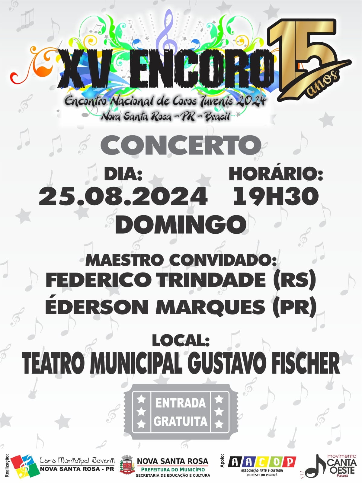 O município de Nova Santa Rosa será sede do 15º Encoro (Encontro Nacional de Coros Juvenis). A programação ocorre entre sexta-feira (23) e domingo (25). O evento visa reunir adolescentes e jovens de vários municípios em prol da música e do canto coral.